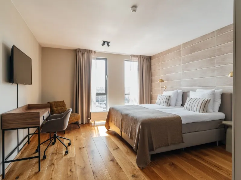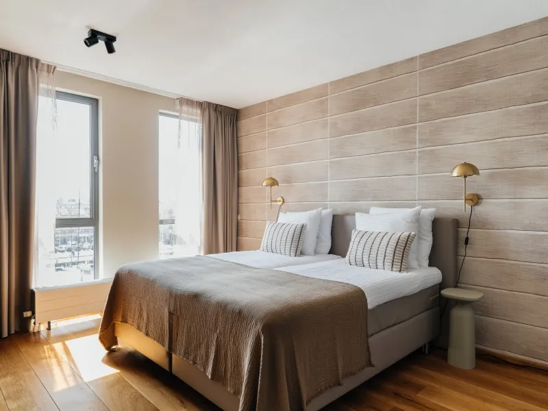 The BizStay Harbour no. 12 apartment is a truly remarkable gem. This spacious 2-bedroom apartment, covering 116 square meters, offers breathtaking harbour views from three sides. The apartment boasts a delightful balcony overlooking the harbour, providing a picturesque view of the boats coming and going. The interior of the apartment is exquisitely designed and furnished to the highest standard, ensuring a luxurious experience. It offers essential amenities, including high-speed internet, a large SMART TV, a fully equipped kitchen, a spacious bathroom, a separate toilet, and private laundry facilities with a washer and dryer. With two bedrooms, the apartment can comfortably accommodate up to five people. The comfortable box spring beds in each bedroom ensure a good night's sleep. Each bedroom also features a SMART TV. A desk is provided, making the apartment suitable for both work and leisure and perfect for both short and extended stays.