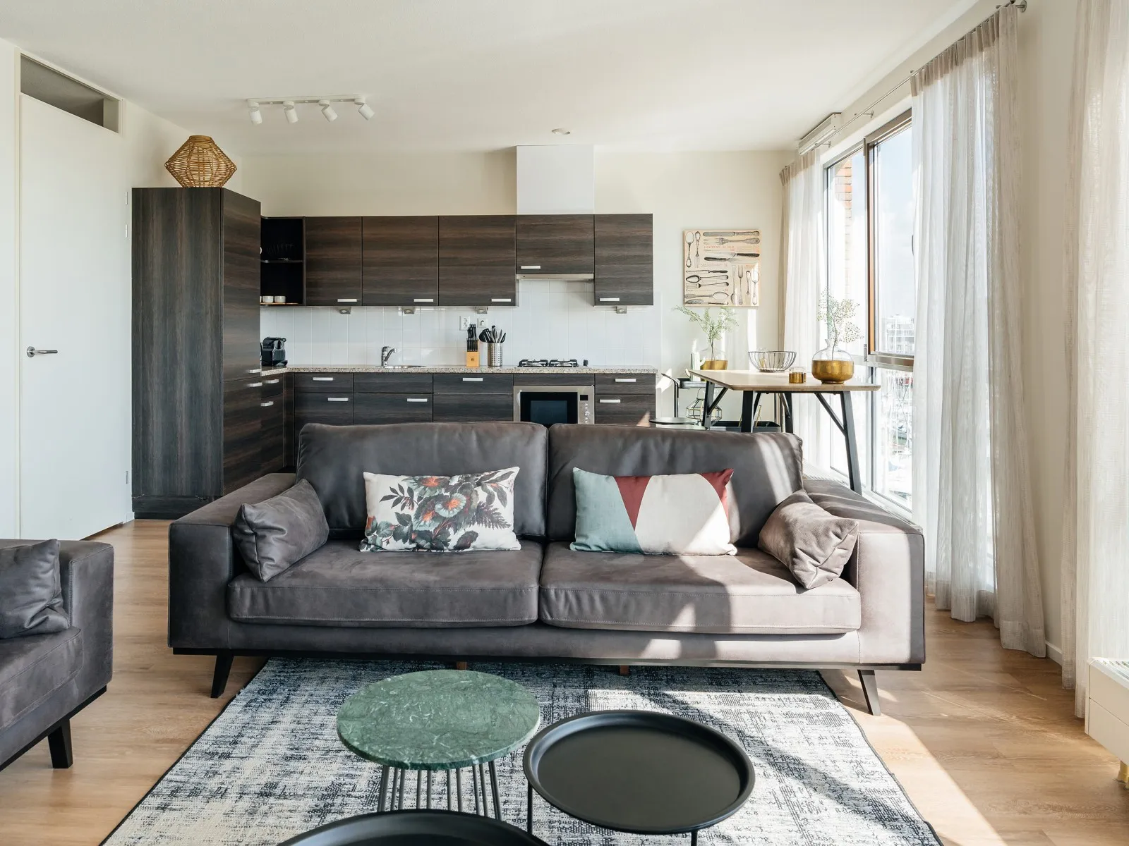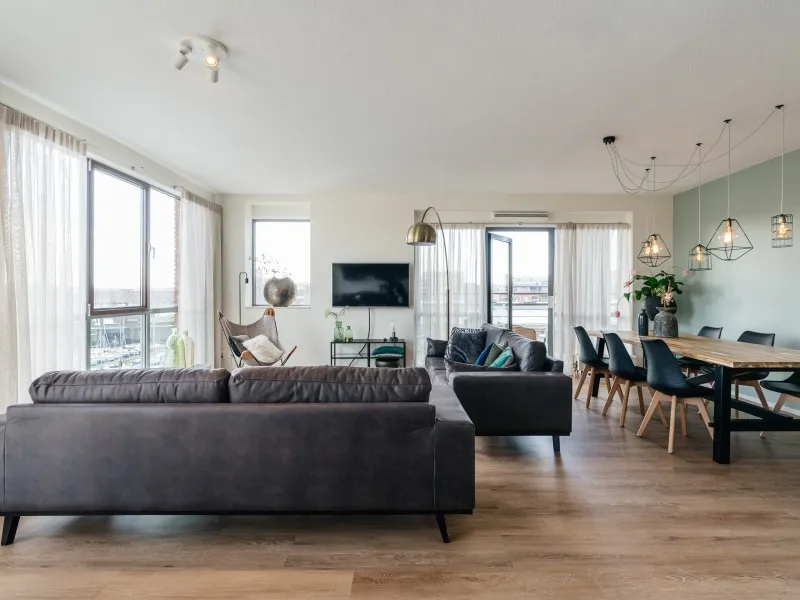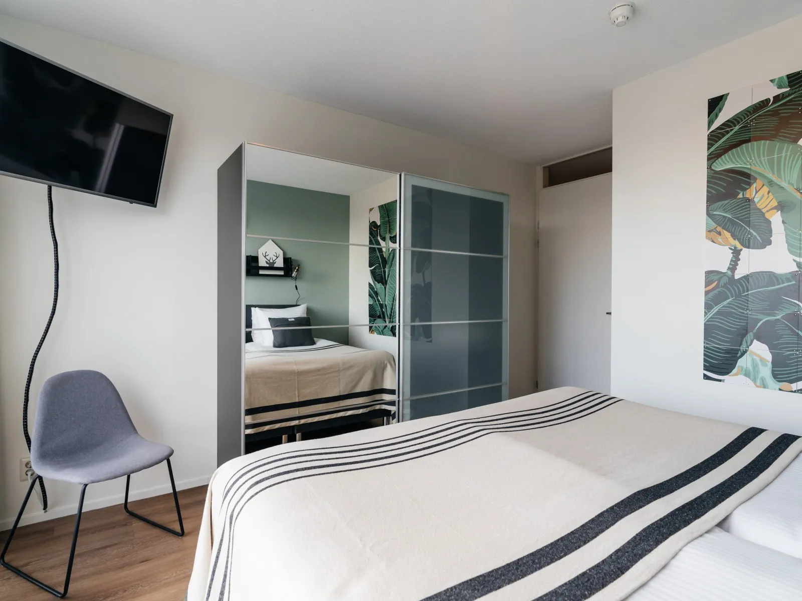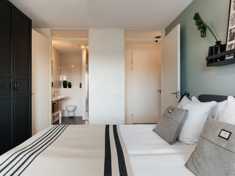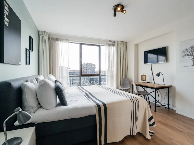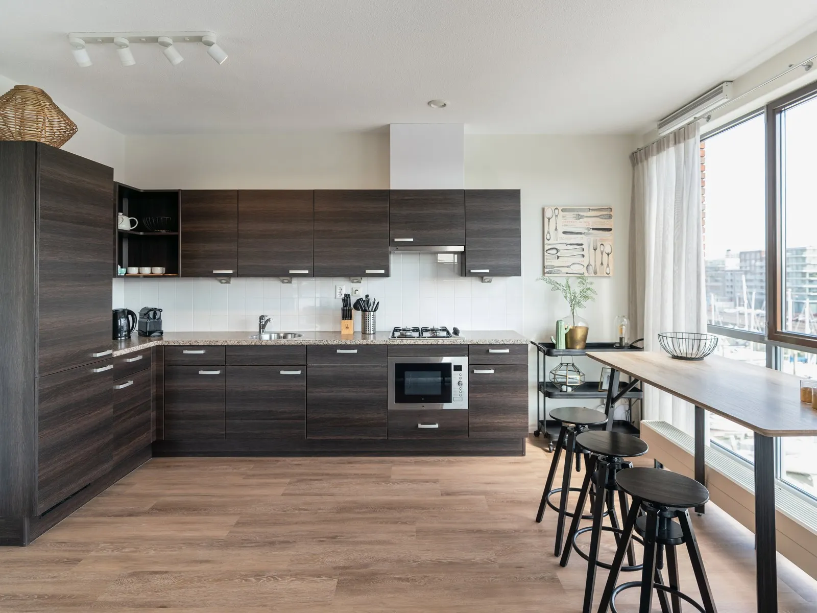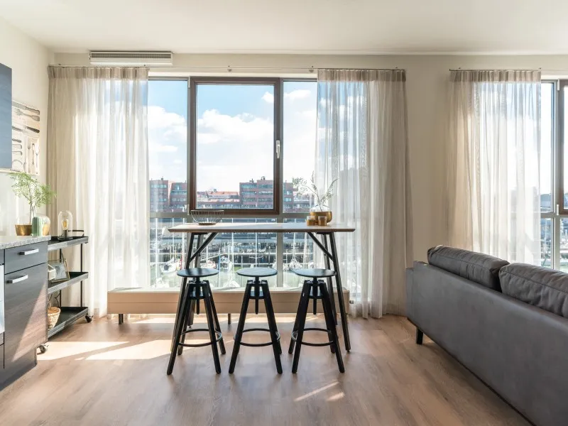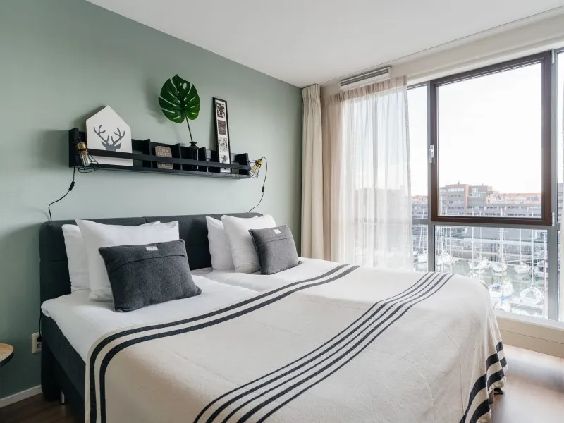 BizStay Harbour 80B measures 123 m2 and is one of the few 3-bedroom / 2 bathroom apartments BizStay offers on this venue. The spacious balcony faces South-West and overlooks the ship yard and the many yachts moored in the harbour. The apartment itself is beautifully designed and furnished to the highest standard, providing a luxurious and comfortable setting for your stay. It includes essential amenities such as high-speed internet, a large SMART TV, a fully equipped kitchen, two spacious bathrooms with shower, of which one also has a bath, a second separate toilet, and private laundry facilities including a washer and a dryer. With three spacious bedrooms this apartment can accommodate up to six people. The comfortable box spring beds ensure a good night's sleep. Each bedroom is equipped with a SMART TV, and a desk is provided, making the apartment ideal for both work and relaxation. It's suitable for both short-term and long-term stays, offering all the necessary facilities.
