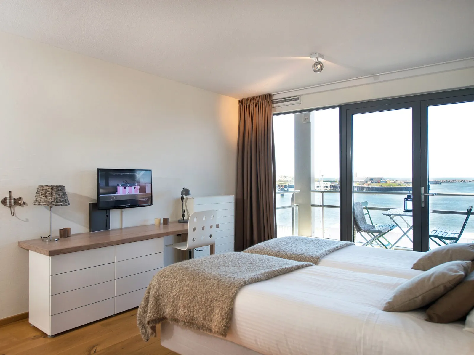 The apartment is part of the Nautical Center Scheveningen, nestled at the second inner harbour of Scheveningen and only 15 minutes away from the vibrant city center of The Hague. Scheveningen is the most famous seaside resort of The Netherlands with an abundance of attractions and beach pavilions. Within walking distance, you'll find the beautiful beach, some of the finest local restaurants, a supermarket, and the 'world-renowned' local fish shop Simonis, with the best fresh fish in town. A leisurely stroll along the promenade takes you to the famous pier with the ferris wheel, and after sunset, you can put on your dancing shoes to enjoy the vibrant nightlife. During your stay, you can also explore one of the many cultural hotspots the city of The Hague has to offer, including world-class attractions like the Louwman car museum, miniature city Madurodam, Legoland and art museums like Escher in the Palace, Mauritshuis, and Voorlinden. This seamless fusion of beach life and city life is why so many people return to this stunning location year after year.