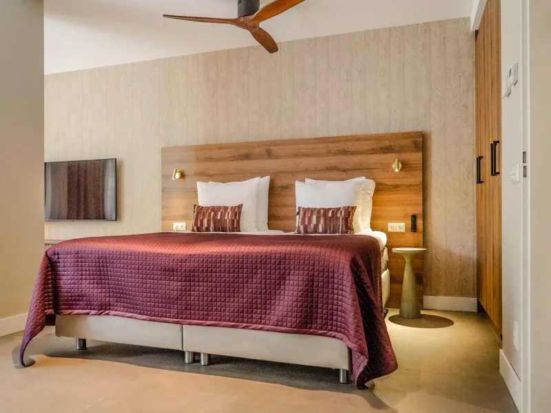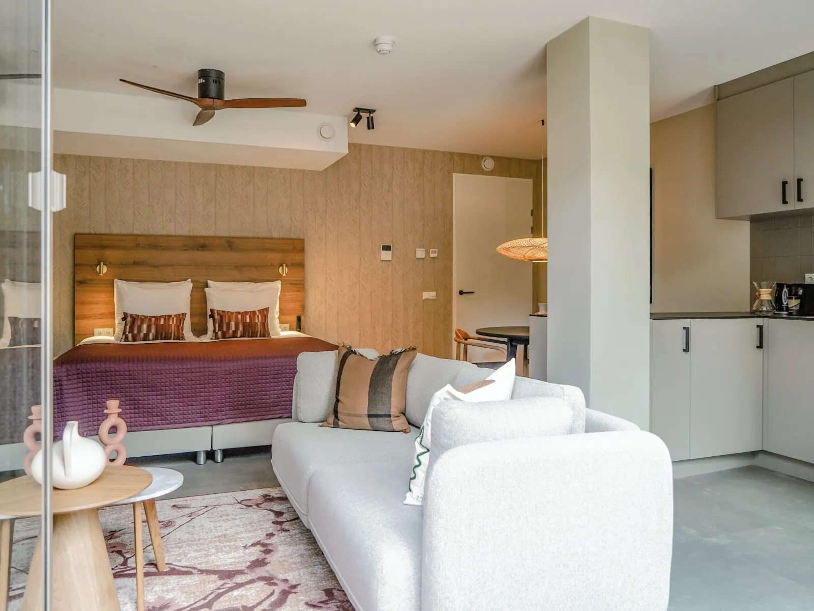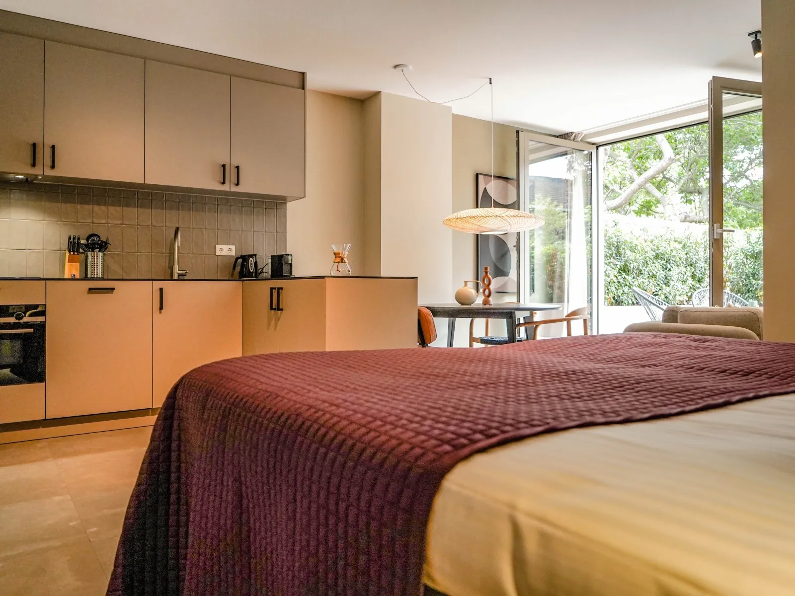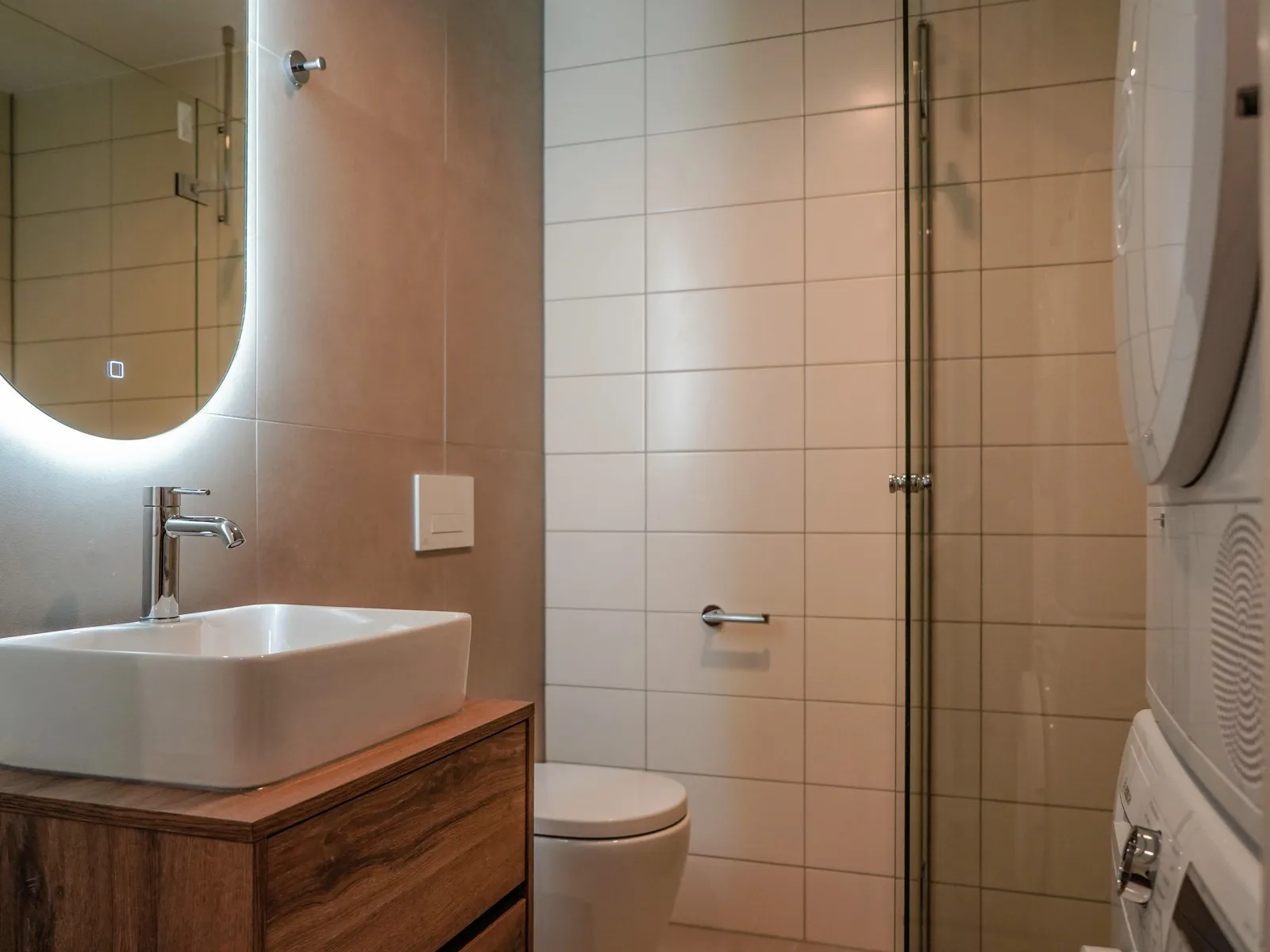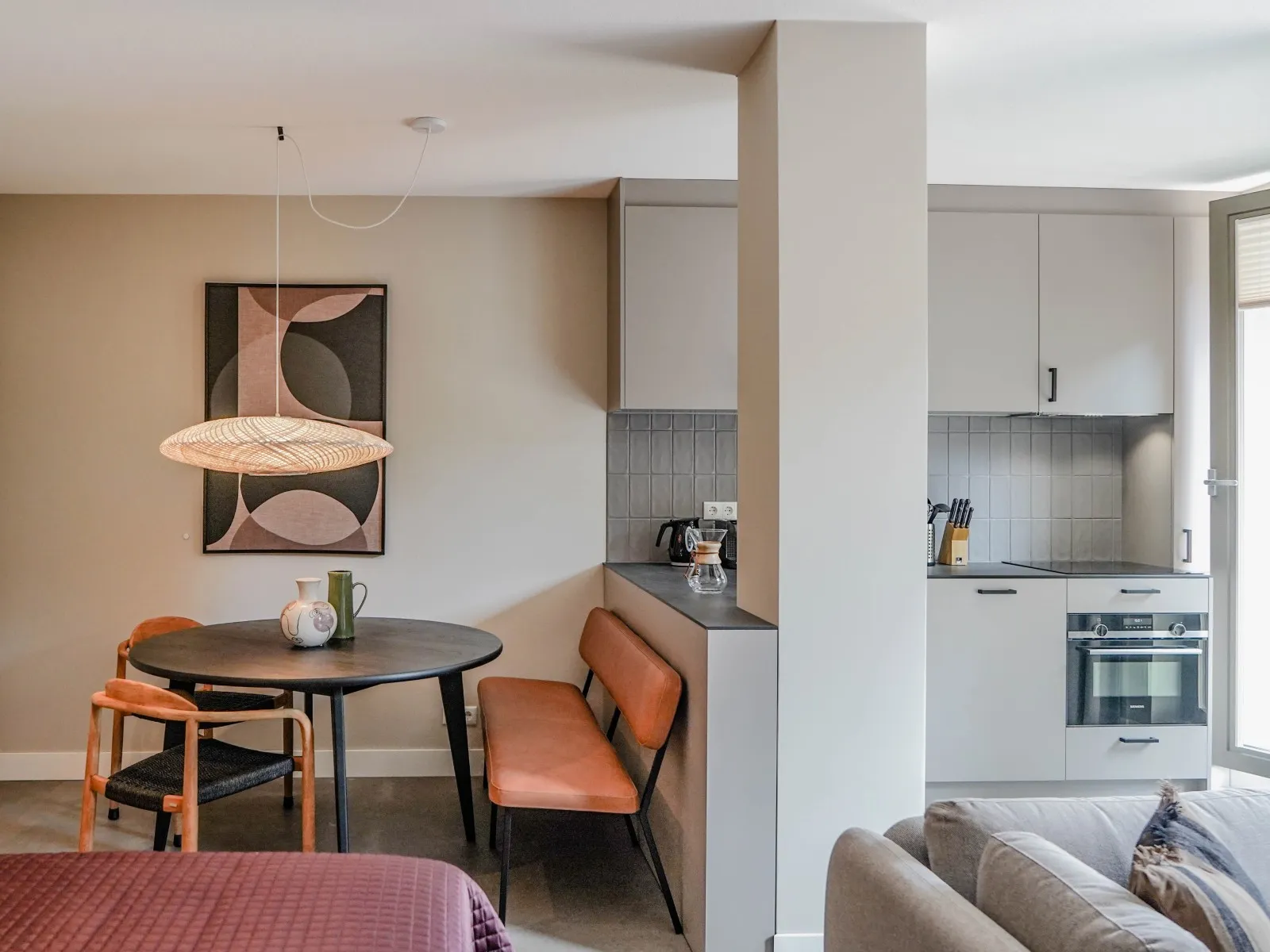 This studio apartment, designed for up to two guests, demonstrates that a 40 sqm space doesn't require compromising on comfort. It features a fully equipped kitchen, a dining area, a cozy sofa, a large SMART TV with Chromecast, a comfortable bed, a bathroom, a private washer and dryer, and a 10 sqm private terrace. You'll be pleasantly surprised by the level of comfort packed into this compact space. Whether you're on a budget-friendly business or leisure trip, this apartment is the perfect place to stay for a few days, a week, or even months. Notably, the electricity and heat you'll use during your stay are primarily generated by solar collectors, contributing to the sustainability of BizStay Walden, making it an eco-friendly building.