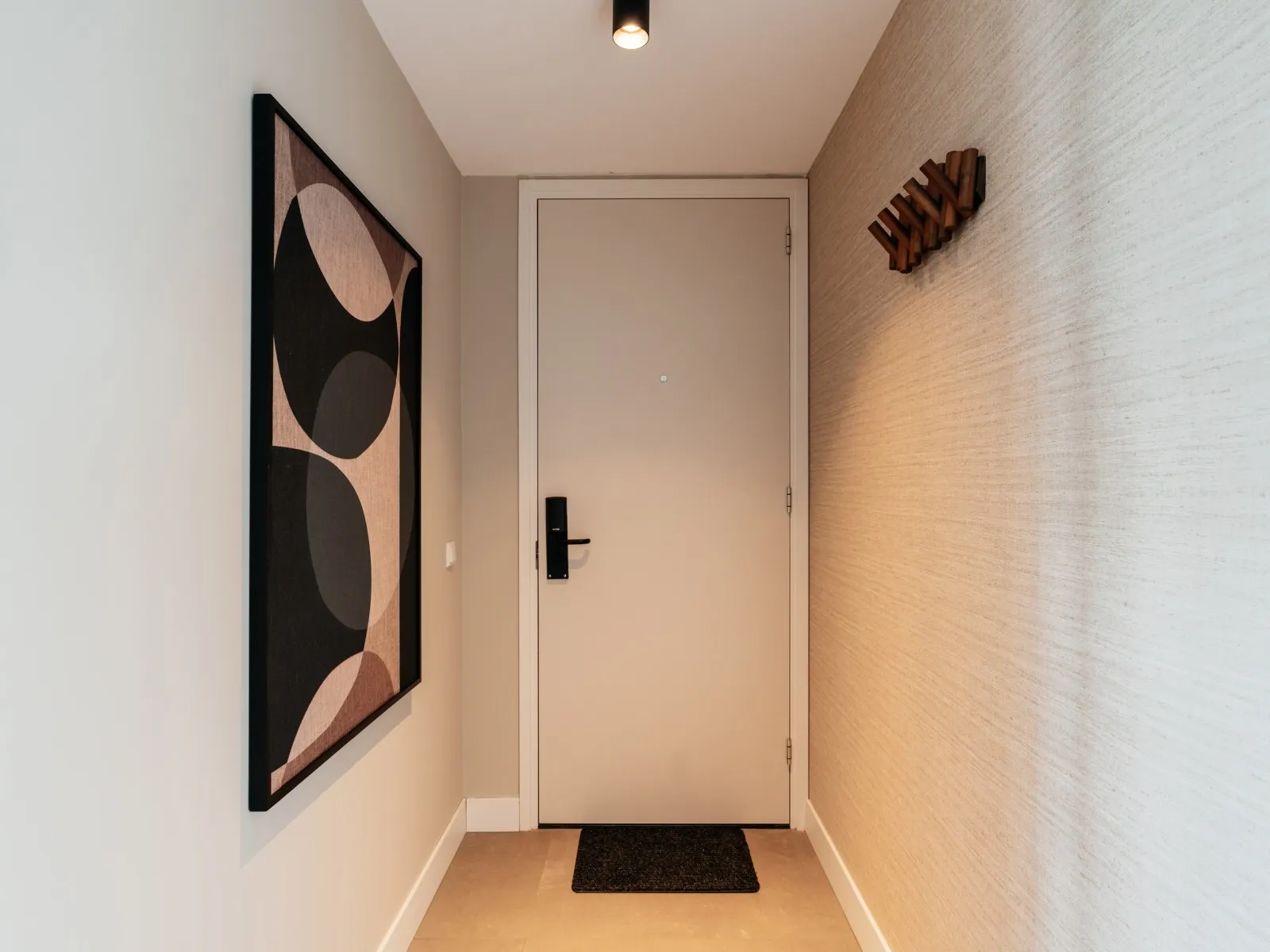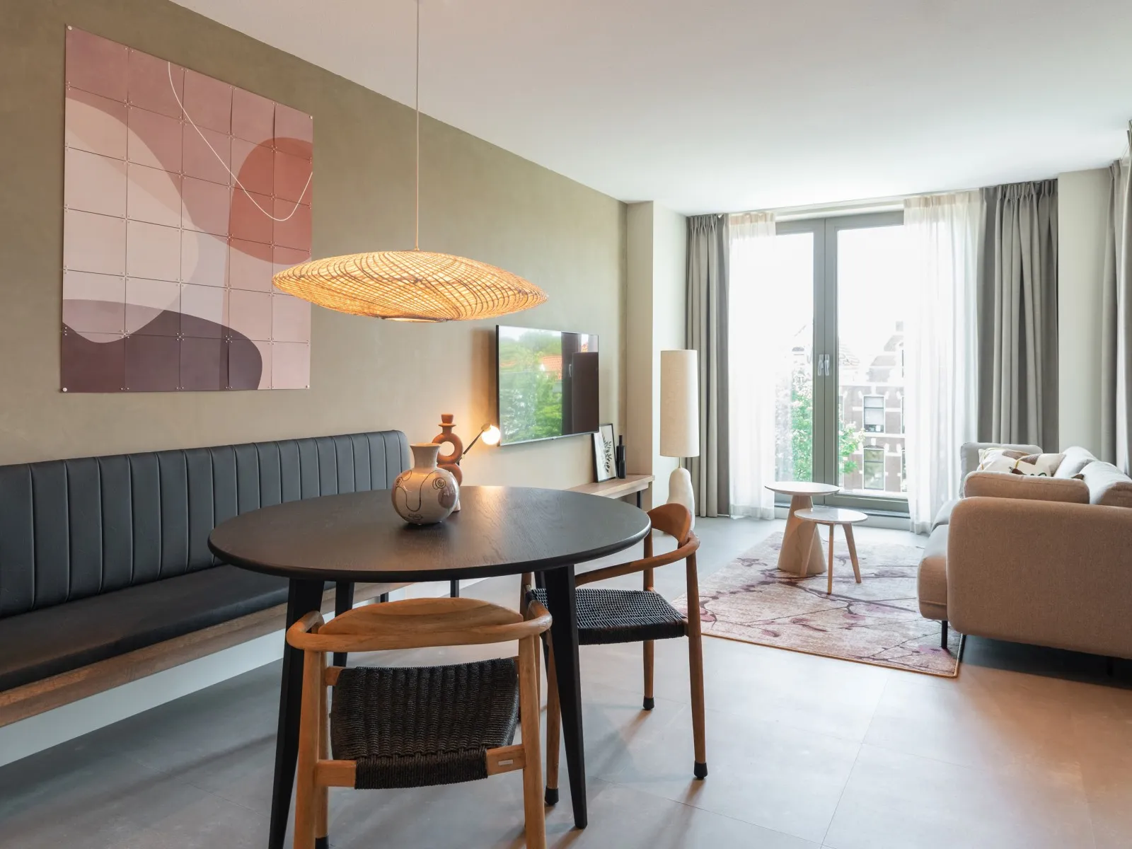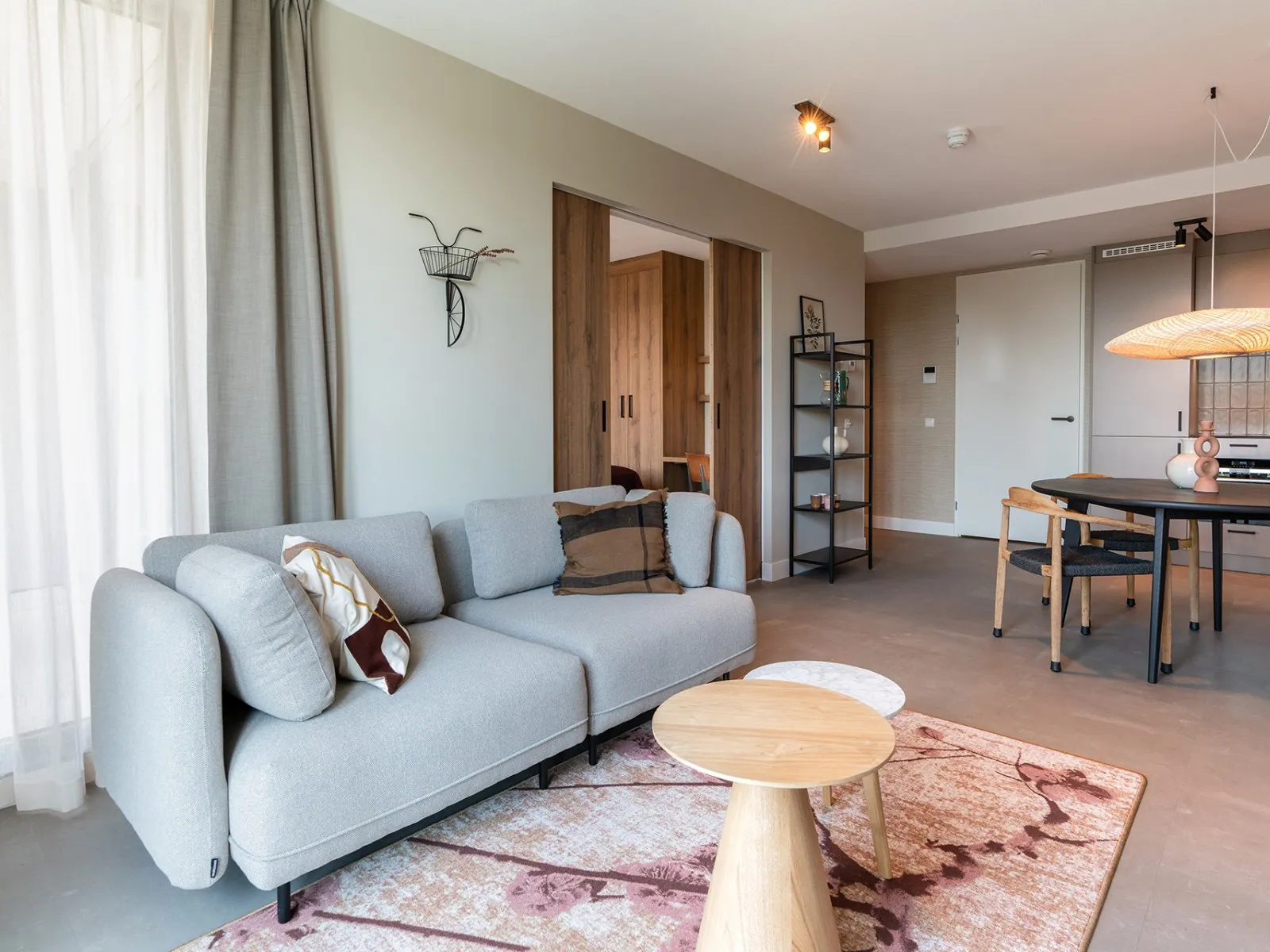 This 1-bedroom apartment, spanning 60 sqm, provides a more spacious option compared to the studio. It comfortably accommodates up to 2 guests and is suitable for both short and long stays. Upon entry, you'll immediately experience the inviting ambiance, consistently reflected in the interior design, characterized by a blend of natural colors and materials with contemporary technology. The apartment features a well-equipped kitchen, a dining area, a cozy sofa, and a large SMART TV with Chromecast. In the bedroom, you'll find a spacious and comfortable bed, a second SMART TV with Chromecast, a desk, and ample closet space. The generous bathroom includes a shower, a vanity with drawers, and a heated mirror. There's a separate toilet and a dedicated laundry room with a washing machine and dryer. The apartment also boasts a 4 sqm balcony. Notably, the electricity and heat you'll use during your stay are predominantly generated by solar collectors, contributing to the sustainability of BizStay Walden, making it an eco-friendly building.