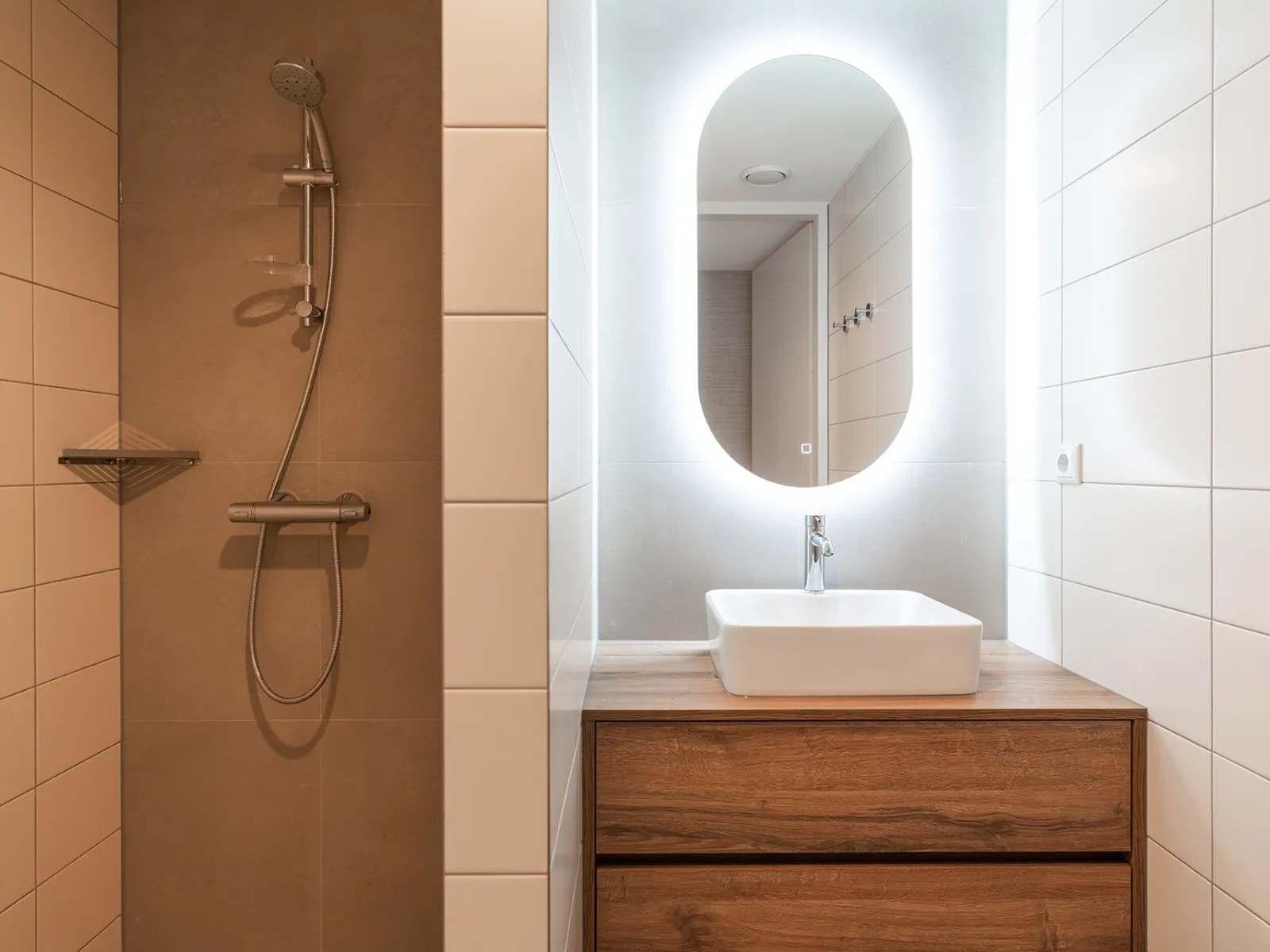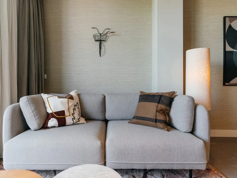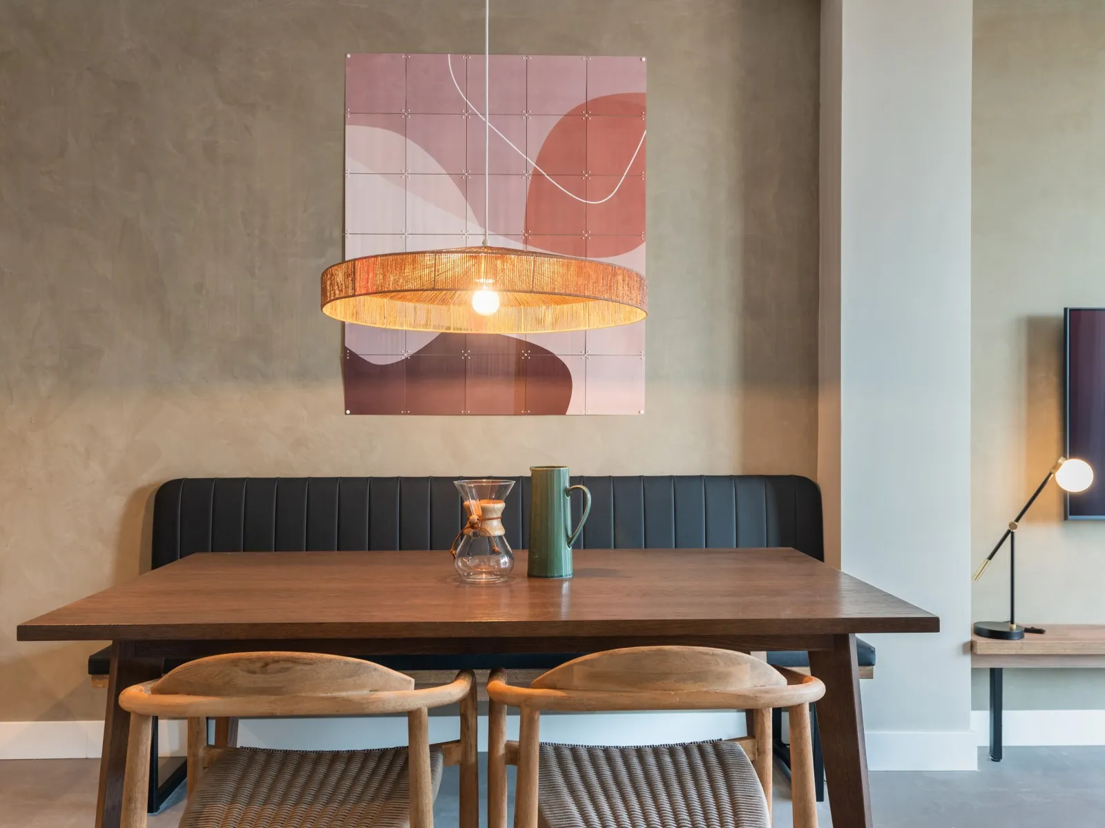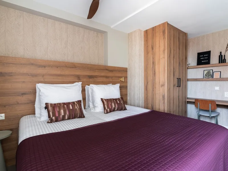 These 2-bedroom apartments, each spanning 60 sqm, provide a more compact alternative to the larger 2-bedroom units. Designed to accommodate up to 3 guests, they are perfect for smaller families or two individuals who wish to share a living space while enjoying the comfort of private bedrooms. Whether your stay is brief or extended, these apartments provide all the comfort you need. As you step inside, you'll immediately experience the inviting atmosphere consistently carried throughout the interior, marked by a harmonious blend of natural colors, materials, and contemporary technology. The apartment features a fully equipped kitchen, a dining area, a cozy sofa, and a large SMART TV with Chromecast. The master bedroom is furnished with a comfortable double bed, another SMART TV with Chromecast, a desk, and ample closet space. In the second bedroom, you'll find a comfortable full-size single bed and closet space. The spacious bathroom includes a shower, a vanity with drawers, and a heated mirror. There is a separate toilet and a laundry room equipped with a washing machine and dryer. Additionally, the apartment boasts a 4 sqm balcony. Remarkably, the electricity and heat you'll utilize during your stay are primarily generated by solar collectors, underlining the sustainability of BizStay Walden as an eco-friendly building.